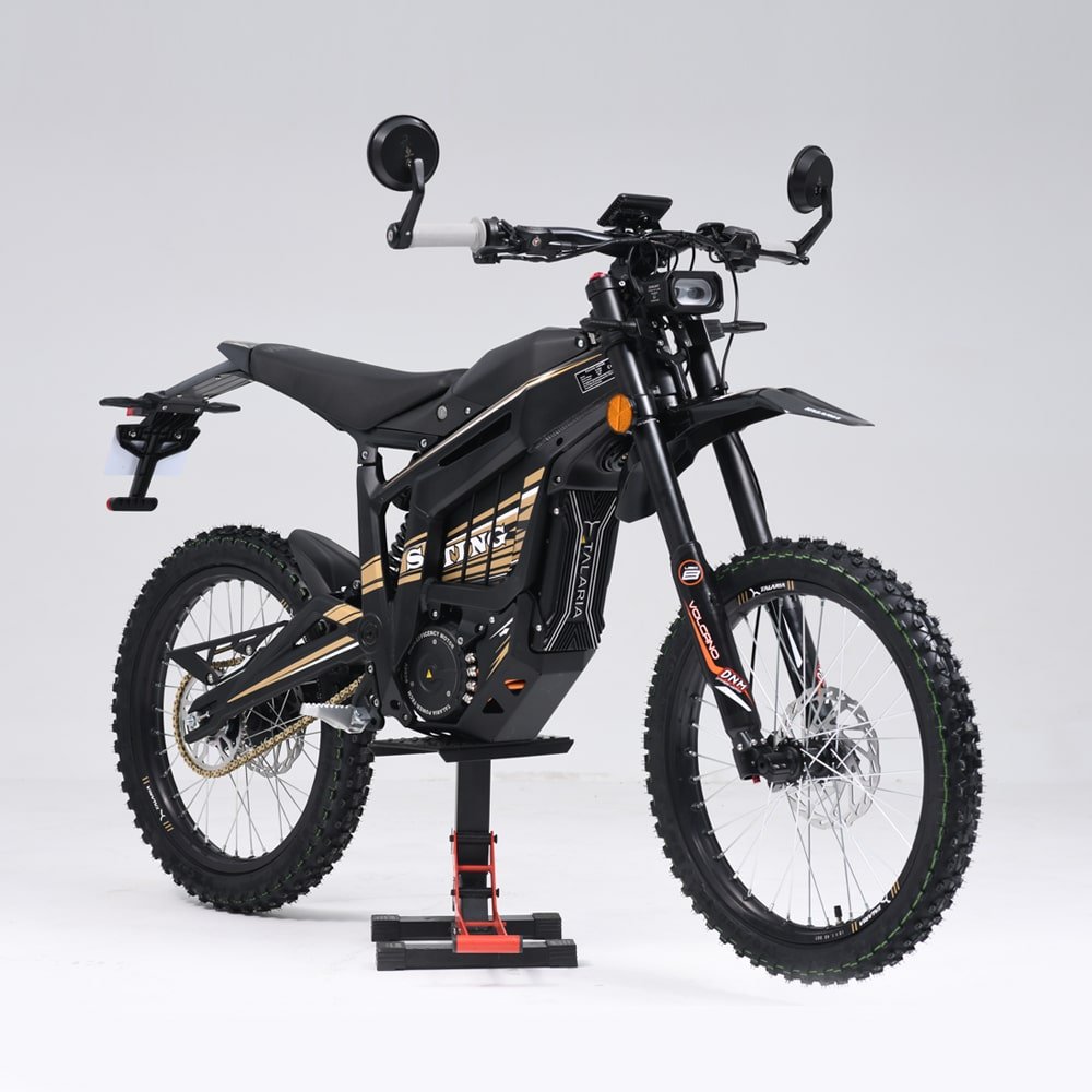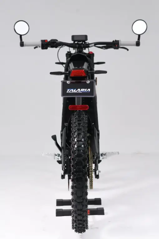 The Talaria electric dirt bike comes from the original creators of the Surron and it is very similar. It is also different in a few important respects. It has a larger frame with a taller seat. It has a larger battery for more range. It has an enclosed, geared, primary drive. It has a wider swinging arm with a wider rear tyre . It has a four level regeneration system so that you can tailor the amount of engine braking that you prefer. It has fully adjustable suspension (damping and preload adjustment) The Talaria seems to have more acceleration from standstill for instant electric motocross fun.