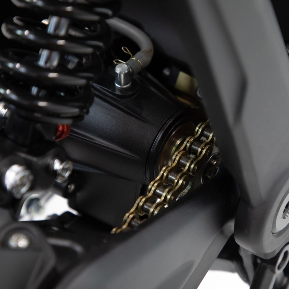 The Talaria Sting is powered by an impressive 60V 38Ah lithium-ion battery which can be swapped and/or removed in seconds, allowing the possibility of a limitless range with a simple battery swap.